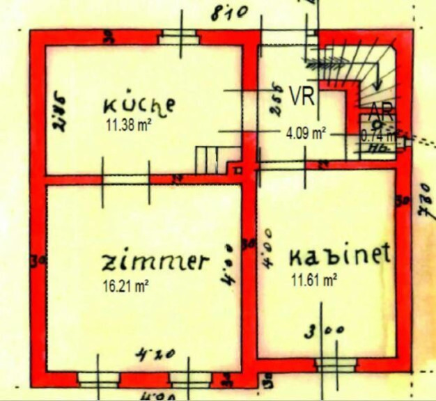 Das Haus (Baujahr 1926) bietet 3 helle Zimmer, eine große Küche, ein Badezimmer, einen Keller sowie einen Rohdachboden. Der Zustand ist gepflegt, jedoch renovierungsbedürftig – ideal für individuelle Gestaltung. Die Zimmer sind teilweise möbliert, eine ältere Einbauküche ist vorhanden.