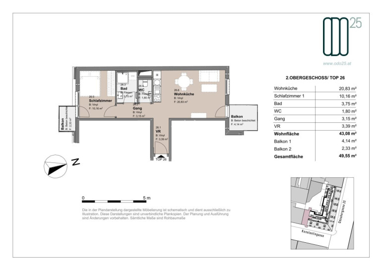 ODO25 befindet sich in attraktiver Lage der Odoakergasse im 16. Wiener Gemeindebezirk und überzeugt durch eine hervorragende Anbindung an die Wiener Innenstadt sowie an zahlreiche Naherholungsgebiete. Die ausgezeichnete öffentliche Verkehrsanbindung mit mehreren Straßenbahn-, Bus- und S-Bahn-Linien ermöglicht schnelle und flexible Mobilität in alle Teile der Stadt. Grün- und Freizeitflächen wie Wilhelminenberg, Steinhofgründe, Kongreßpark und Kongreßbad sind in wenigen Minuten erreichbar und bieten vielfältige Erholungsmöglichkeiten. Schulen, Kindergärten, medizinische Versorgung sowie Einkaufsmöglichkeiten befinden sich in unmittelbarer Nähe. Der nahegelegene Brunnenmarkt und der Yppenplatz ergänzen das Angebot durch urbanes Markt- und Gastronomieflair.