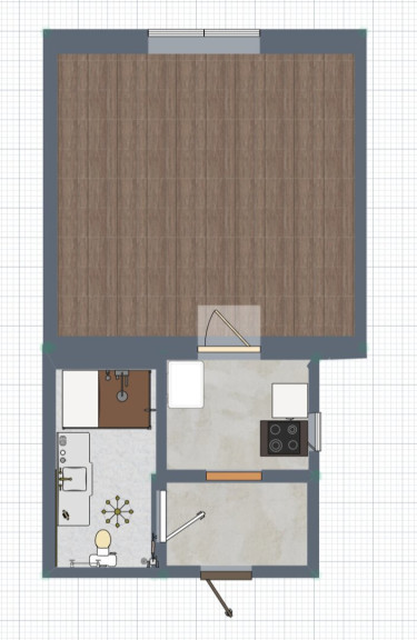 - Separate, voll eingerichtete Küche (Kochfeld, Kühlschrank, Spüle, Waschmaschine)