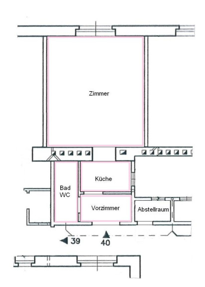 - 28 m² Wohnfläche, 3. Stock (oberstes Wohngeschoss)
