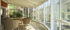 - Wintergarten umgeben von der Terrasse, Bäumen und Pool