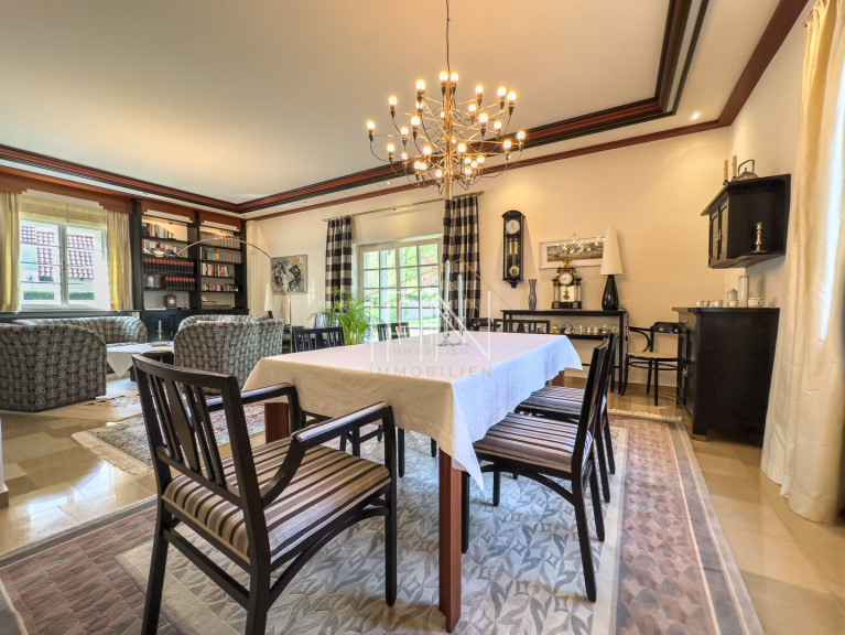 - Wohnzimmer mit ca. 50m², Essbereich, Sofabereich mit historischem Stilofen und Bibliothek