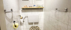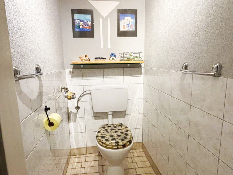 Das Badezimmer verfügt über eine begehbare Dusche (ca. 117 cm x 90 cm) und Platz für einen Waschtisch und die Waschmaschine. Das WC liegt separat neben dem Badezimmer. Ebenso der praktische Abstellraum, der für zusätzlichen Stauraum sorgt und für alles, was man schnell verstauen möchte, genügend Platz bietet.