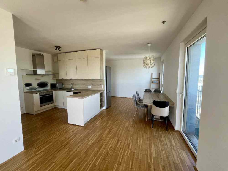 Diese Wohnung, welche über 3 Zimmer samt Abstellraum und über eine Kombination aus Loggia und Balkon, als auch über ein Kellerabteil verfügt, befindet sich im 28. OG des bekannten CityGate Einkaufszentrum und wird mit einer hochwertigen Küche samt Geräten vermietet. Die Lage dieser schönen Wohnung macht das Objekt besonders attraktiv, denn die U1 Station ist nur wenige Meter entfernt und ermöglicht eine schnelle und direkte Verbindung in die Wiener Innenstadt. Das Einkaufszentrum CITYGATE ist direkt im Gebäude und bietet eine Vielzahl an Nahversorgung an. Vom großen Interspar bis hin zu Apotheke, Post und Bekleidungsgeschäften finden Sie hier ein umfangreiches Angebot. Ein Bäcker im Einkaufszentrum versorgt Sie jeden Tag mit Frühstück, oder warmem Gebäck und auch für Mittag- und Abendessen ist hier bestens gesorgt.Die Wohnung selbst ist wie folgt aufgeteilt: