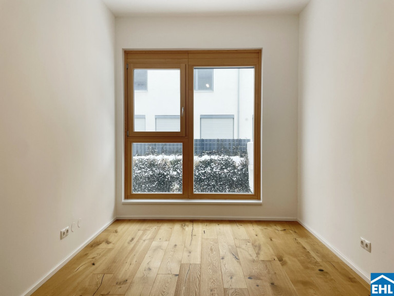 Die Wohnungen sind großzügig geschnitten und zeichnen sich durch sehr intelligente Grundrissgestaltung aus. Alle Wohnungen verfügen über hochwertige Dielenböden in den Wohnräumen, großformatiges Feinsteinzeug in den Nebenräumen und Bädern, externen Sonnenschutz, Fußbodenheizung und eine Sommer-Temperierung. Die Küche ist in der Wohnung nicht möbliert.