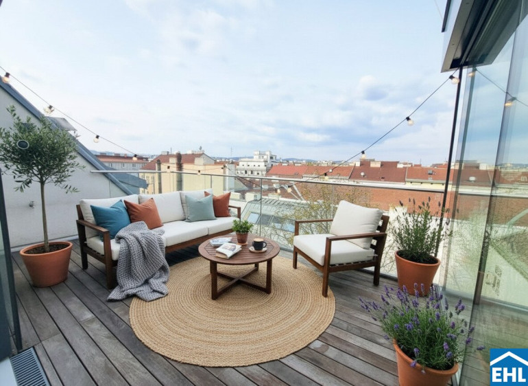 City Vibes & Sunset Moments – DG-Wohnung mit Terrasse beim Brunnenmarkt