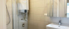 Das Badezimmer ist mit einer Dusche, einem Handtuchheizkörper sowie einem Waschmaschinenanschluss ausgestattet. Für wohlige Wärme sorgen Infrarot-Hybrid-Heizkörper sowie ein Warmwasserspeicher.