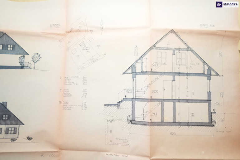 - Bauweise: Massivbau, Satteldach mit Eternit