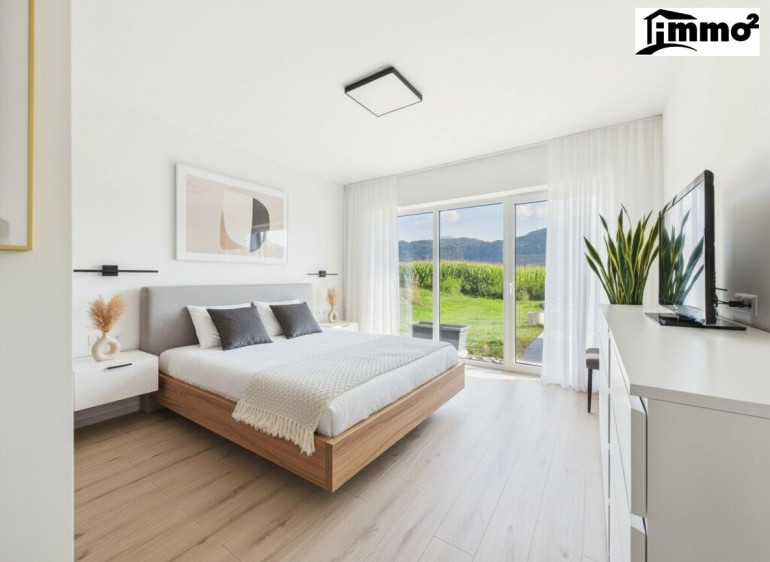 Lage: Ruhige, sonnige Wohnsiedlung mit traumhaftem Blick auf Berge und Wiesen, ca. 12 Fahrminuten nach Klagenfurt