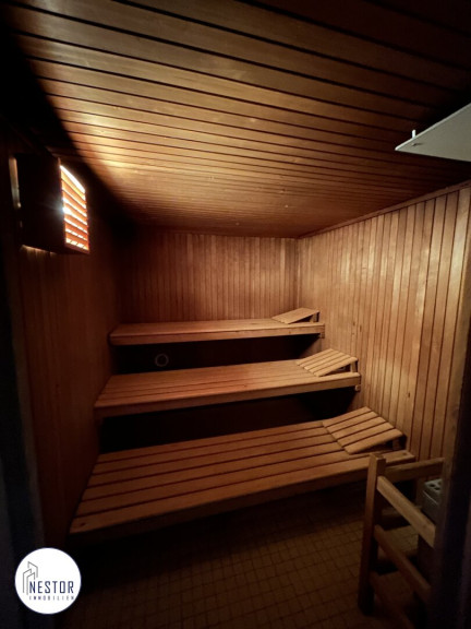 - Die Wohnanlage verfügt über einen Swimmingpool (ca. 20 x 7 Meter groß), ein Kinderschwimmbecken, eine Außendusche, eine Sauna, ein Umkleideraum sowie über einen Jacuzzi.