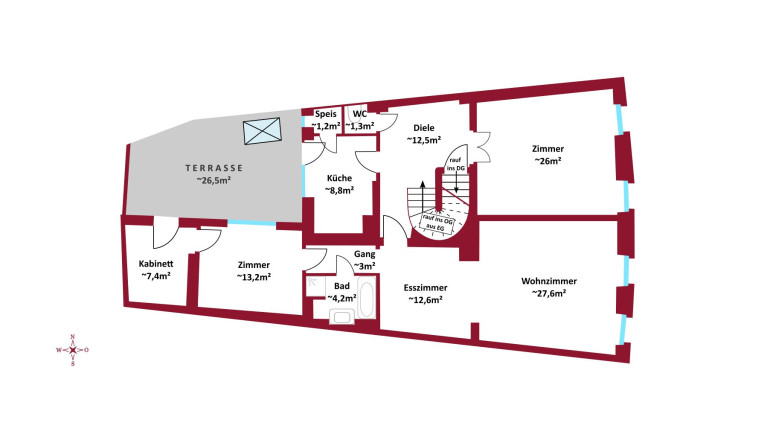 - Terrasse im 1. OG: ca. 27 m²