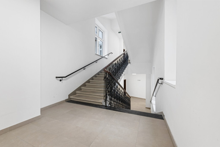 Bereits der repräsentative Hauseingang verspricht Ihnen ein niveauvolles Zuhause, welches sich im Stiegenaufgang fortsetzt.