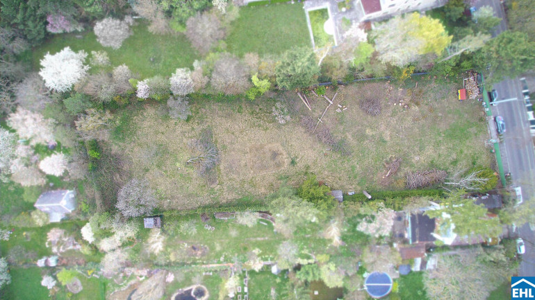 Das Grundstück ist bereits bestandsfrei, da der Abriss des Altbestandsgebäudes bereits erfolgt ist. Eine erste Planung sieht eine Bebauung mit rund 620 m² Wohnfläche, aufgeteilt auf zwei Baukörper, sowie über 1.000 m² Keller- und Garagenflächen vor.