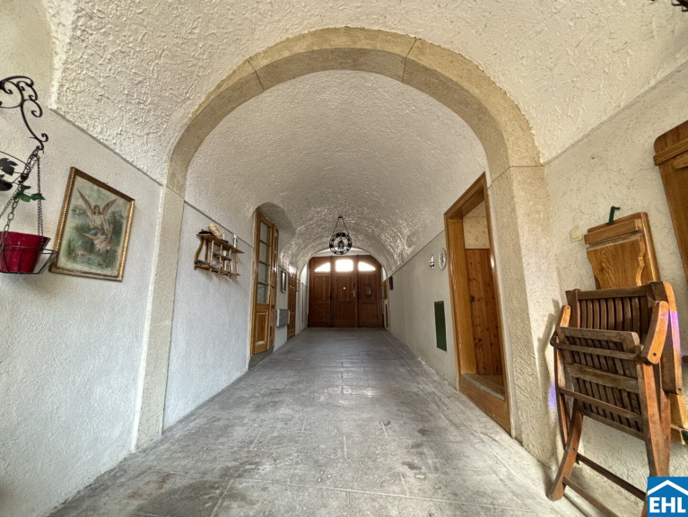 Ein besonderes Highlight ist der idyllische Innenhofgarten – ein geschütztes Refugium, das Ruhe und Natur vereint. Von hier aus gelangt man sowohl in den hinteren Gebäudeteil als auch in den großzügigen Weinkeller und weitere Lagerräumlichkeiten, die das Herz eines jeden Weinliebhabers höherschlagen lassen.