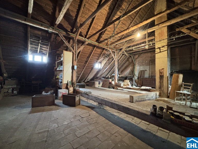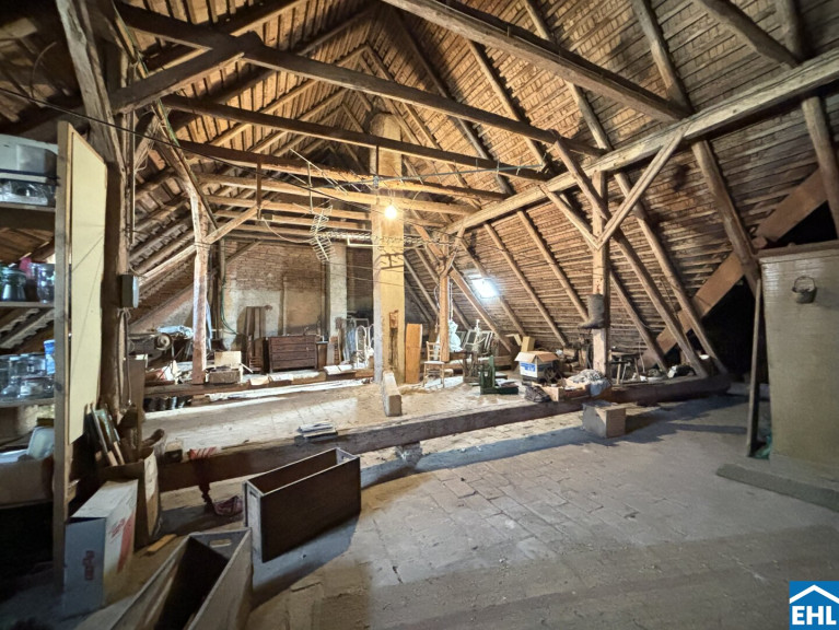 Zusätzlichen Raum für Visionen bietet der rund 160 m² große Rohdachboden, der im Zuge einer Sanierung ausgebaut werden kann und weiteres Potenzial für individuellen Wohnraum schafft.
