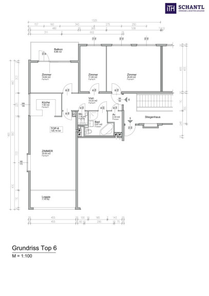 Wohnfläche: ca. 128,19m² + Balkon: ca. 8,88m² + Loggia: ca. 7,74m² + Kellerabteil: ca. 4,5m² + Garagenplatz: ca. 18,5m²