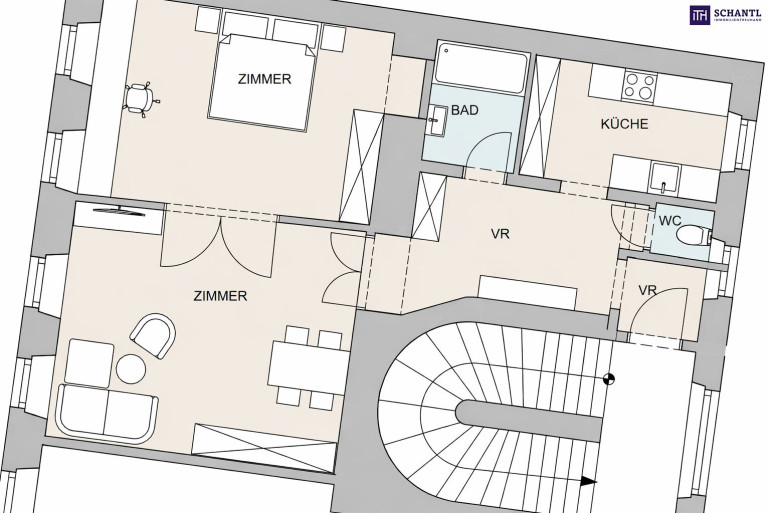 Ihre neue Wohnung im 3.Stock wird Sie restlos begeistern und teilt sich in einen geräumigen Vorraum mit Platz für eine Garderobe und Stauraum, ein separates WC mit Handwaschbecken und Fenster, ein stylisches Badezimmer mit Walk-In Dusche und Waschmaschinenanschluss, eine separate und voll ausgestattete Küche mit Fenster, ein gemütliches Wohn-Esszimmer sowie ein kuscheliges und großzügiges Schlafzimmer.