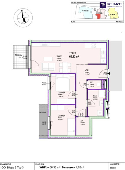 Wohnfläche: ca. 66,33 m² + Terrasse: ca. 4,76 m² + Kellerabteil