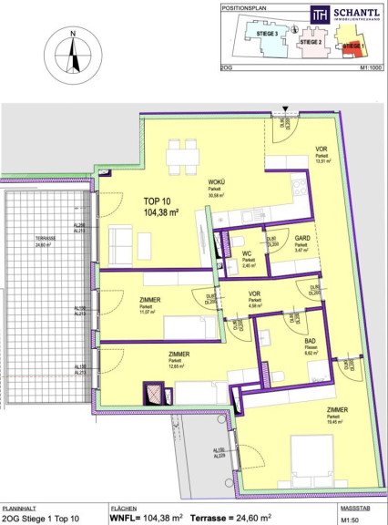 Wohnfläche: ca. 83,89 m² + Terrasse: ca. 24,60 m² + Kellerabteil