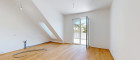 Die Sanitäreinrichtungen überzeugen durch Qualität und Design und fügen sich harmonisch in das Gesamtbild ein. Großzügige Holz-Alu-Fenster mit moderner Dreifachverglasung gewährleisten nicht nur eine hervorragende Energieeffizienz, sondern auch ein angenehmes Raumklima.