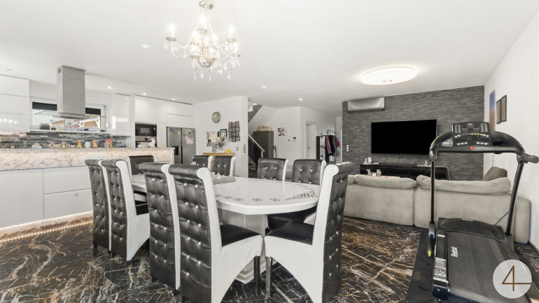 Das Herzstück des Hauses ist der offen gestaltete Wohn- und Essbereich mit direktem Zugang zur sonnigen Natursteinterrasse und dem liebevoll angelegten Garten ein echtes Highlight für entspannte Sommertage und gesellige Abende.
