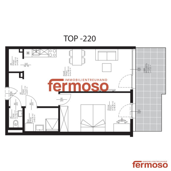 diese durchdacht geplante 2-Zimmer-Wohnung überzeugt durch ihre helle Wohnküche, ein ruhiges Schlafzimmer und eine großzügige Loggia für entspannte Stunden im Freien. Ideal geeignet für Singles, Paare oder clevere Anleger, die auf moderne Ausstattung und zentrale Lage setzen.