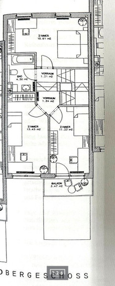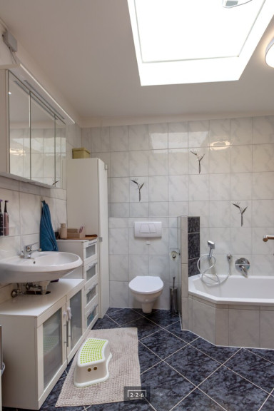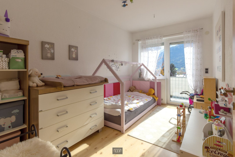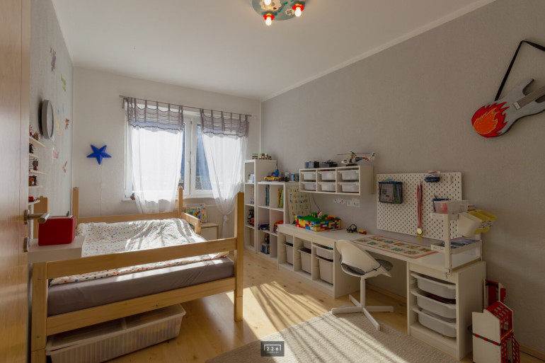Ein großes Schlafzimmer mit angrenzendem Schrankraum, zwei separate Zimmer jeweils mit Zugang auf den ca. 3,5 m² großen Südbalkon, ein Badezimmer mit elektrischem Dachfenster sowie Badewanne Dusche + WC, bieten Platz genug, um mehreren Familienmitgliedern eigene Rückzugsorte zu ermöglichen.