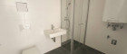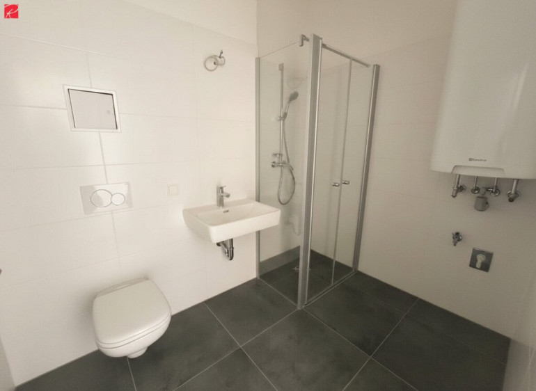 Das Schlafzimmer ist gut geschnitten und bietet ausreichend Platz für Ruhe und Rückzug. Das moderne Badezimmer ist hochwertig verfliest und mit einer ebenerdigen Dusche sowie WC ausgestattet und rundet das komfortable Wohnkonzept ab.