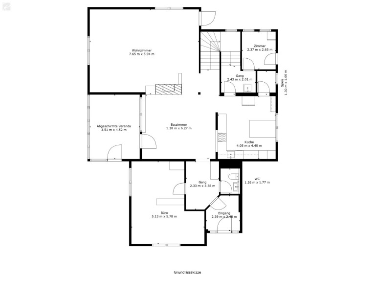- Insgesamt 5 Schlafzimmer + zusätzliches Zimmer im Untergeschoss (Büro/Gäste)