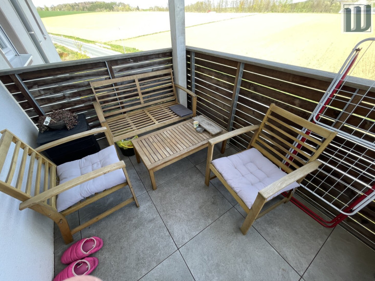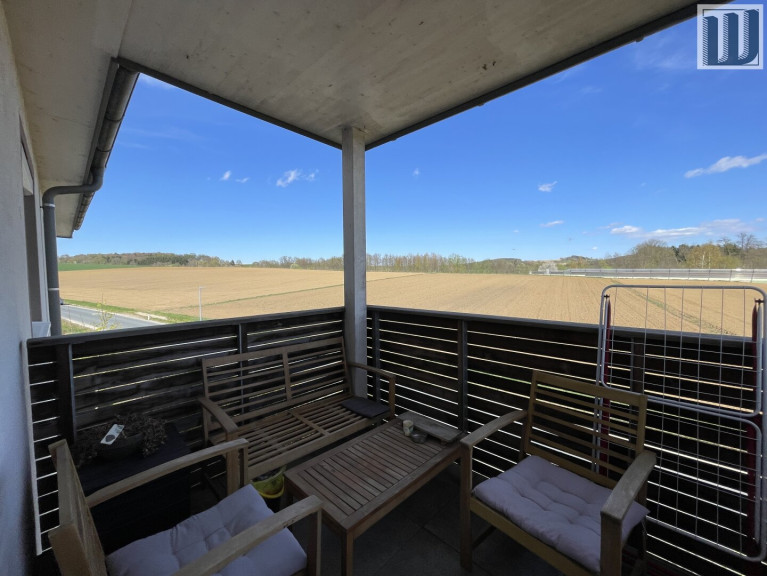 Ein Highlight der Wohnung ist die herrliche Terrasse, die Ihnen einen atemberaubenden Weitblick und einen beruhigenden Blick ins Grüne bietet. Genießen Sie entspannte Stunden im Freien, sei es beim Frühstück in der Sonne oder beim Ausklang des Tages mit einem Glas Wein.