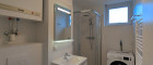 Das moderne Badezimmer verfügt über eine Walk-In Regendusche. Zusätzlich steht Ihnen eine brandneue Waschmaschine zur Verfügung. Außerdem wurde an eine stilvolle LED-Beleuchtung am Badezimmerspiegel gedacht, die für eine elegante Atmosphäre sorgt.