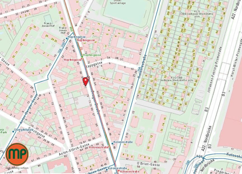 Dieses Neubau-Highlight liegt nur wenige Meter von der Straßenbahnstation Hopfengasse entfernt und bietet via Bahnhof Floridsdorf eine komfortable und schnelle Anbindung in die ganze Stadt.