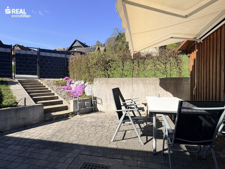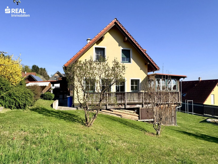Ein Wohlfühltraum sind die herrliche Veranda und der pflegeleichte Garten mit Biotop, wo man viele nette "Platzerl" zum Entspannen findet.