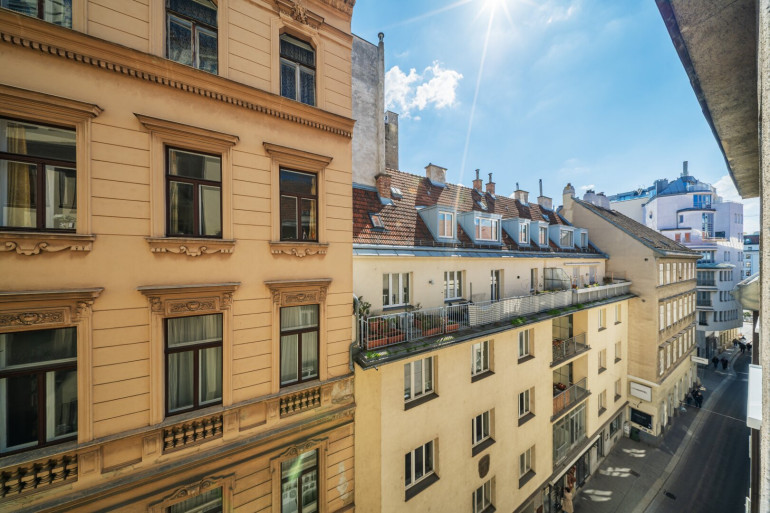Diese neuwertig sanierte Wohnung befindet sich in ausgezeichneter Lage im Herzen von Wien und wird befristet auf 5 Jahre vermietet. Die Wohnung liegt im 4. Obergeschoss eines gepflegten Altbaus ohne Lift und überzeugt durch eine gelungene Kombination aus modernem Wohnkomfort und urbaner Lage.