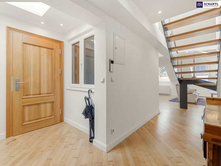 Besonders hervorzuheben ist die vor einigen Jahren neu ausgebaute Dachgeschosswohnung, das sich als moderne, lichtdurchflutete Wohnebene mit großzügiger Dachterrasse und beeindruckendem Blick über Wien und zum Kahlenberg präsentiert. Dadurch entsteht eine einzigartige Verbindung aus historischen Charme und zeitgemäßer Architektur.