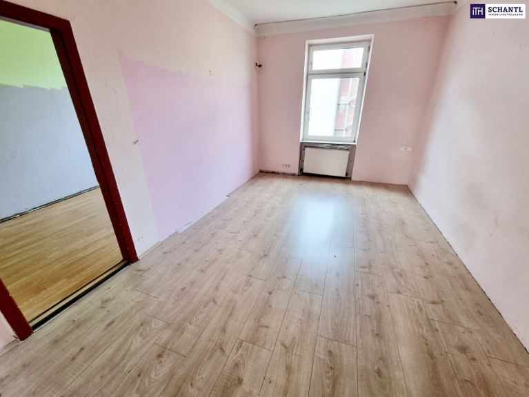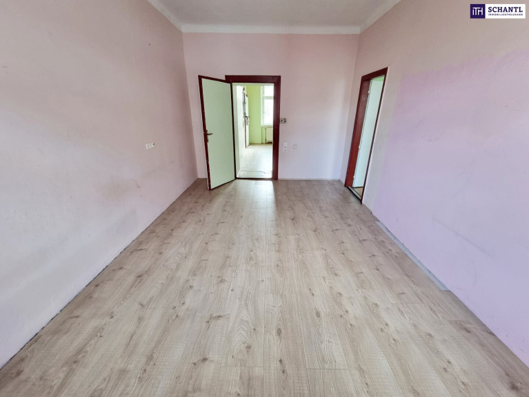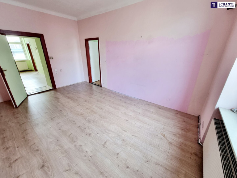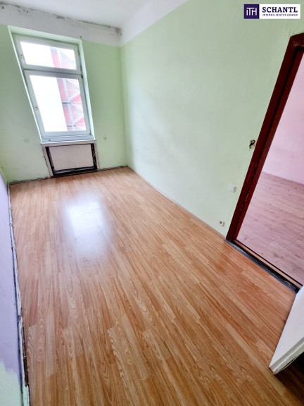 Ihre neue Wohnung ist aktuell sanierungsbedürftig und bietet Ihnen die Chance, Ihre Wünsche umzusetzen! Sie teilt sich in einen Vorraum mit angeschlossenem Küchenbereich (andere Gestaltung natürlich möglich), ein Badzimmer mit WC, ein kleines und hofseitiges Schlafzimmer (hier war früher die Küche), eine geräumiges Wohn-Esszimmer sowie ein weiteres Schlafzimmer.