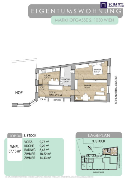 Wohnfläche: ca. 57,15m² + großes Kellerabteil: ca. 6,48m²