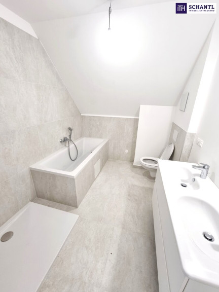 Auf der 2.Ebene befindet sich der private Bereich und teilt sich dieser in ein stylisches Badezimmer mit Dusche, Badewanne und 2.WC, sowie 3 getrennt begehbare Schlafzimmer.
