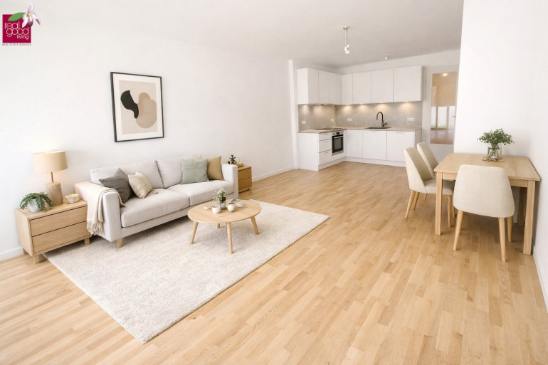 Auf rund 75 m² Wohnfläche überzeugt die Wohnung durch eine durchdachte Raumaufteilung, helle Räume und hochwertige Ausstattung. Die großzügige Wohnküche (ca. 29 m²) bildet das Herzstück der Wohnung, während zwei Schlafzimmer ausreichend Platz für Familie, Gäste oder Homeoffice bieten.