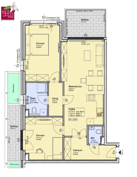 - Ca. 75 m² Wohnfläche + 2 Balkone