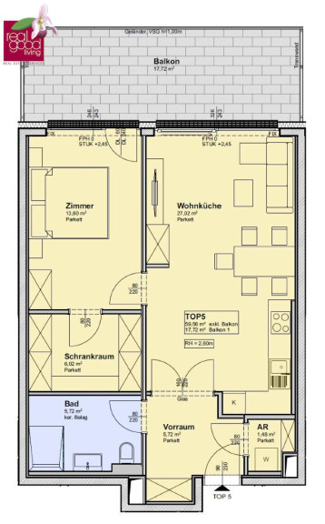 - Balkon: 17,72 m²
