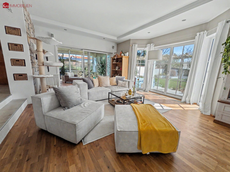 Der Kaufpreis von 849.000,00 € spiegelt die hochwertige Ausstattung und den ausgezeichneten Zustand dieser Immobilie wider. Die Kombination aus Parkett- und Steinboden schafft eine warme und zugleich elegante Atmosphäre, die Sie und Ihre Gäste begeistern wird. Besonders hervorzuheben ist der gemütliche Kachelofen, der in den kühleren Monaten für behagliche Stunden sorgt.