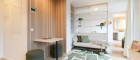 - elegante Wohnküche mit optisch abgetrennten Schlafbereich