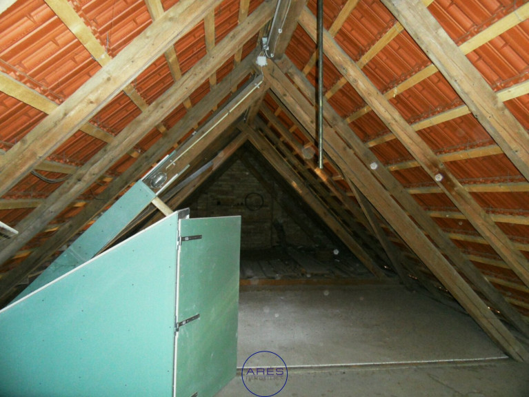 Dieses Haus hat einer Wohnfläche von ca. 85m² und gliedert sich in 3 Zimmer, Küche, Vorzimmer, Badzimmer m WC und Wanne, Badezimmer mit Dusche, einem extra WC, und einem Nebenraum bzw. Werkstatt mit ca. 26m². Im Wohnhaus besteht noch ein Aufgang zum Dachboden sowie ein Abgang in den Keller mit ca. 12m².