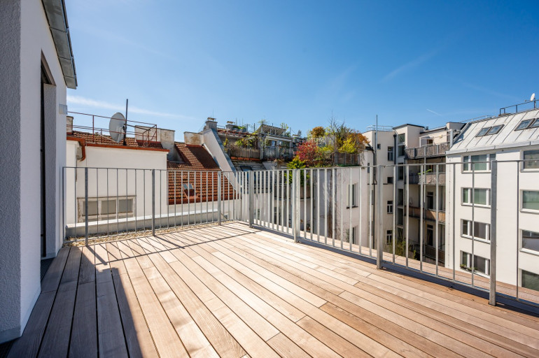 Die Wohnung befindet sich im 5. Stock (Neubau) mit Lift eines in Projektierung befindlichen Altbaus. EG bis 2. Stock sind generalsanierte Altbauwohnungen, ab dem 3. Stock handelt es sich um neugeschaffene Einheiten.