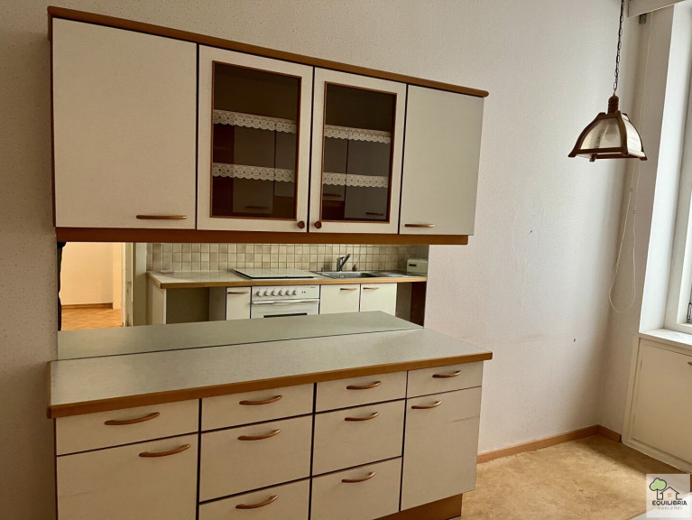Über ein großzügiges Vorzimmer gelangt man in die weiteren Räumlichkeiten. Es stehen insgesamt drei Zimmer zur Verfügung, wobei zwei zentral begehbar sind und ein Zimmer als Durchgangszimmer ausgeführt ist. Ergänzt wird das Raumangebot durch eine separate Küche sowie ein Badezimmer.