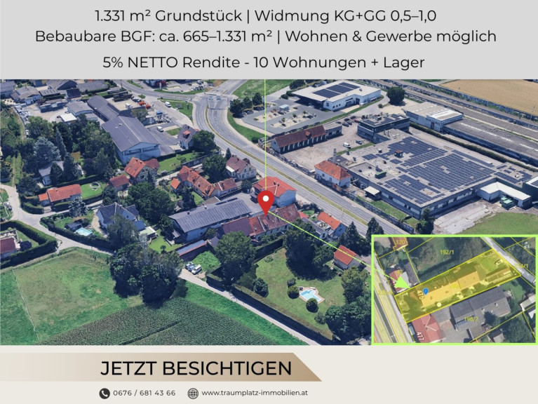 Damit vereint diese Immobilie sowohl die Vorteile eines laufenden Renditeobjekts als auch die Perspektive einer langfristigen Wertsteigerung und Projektentwicklung.