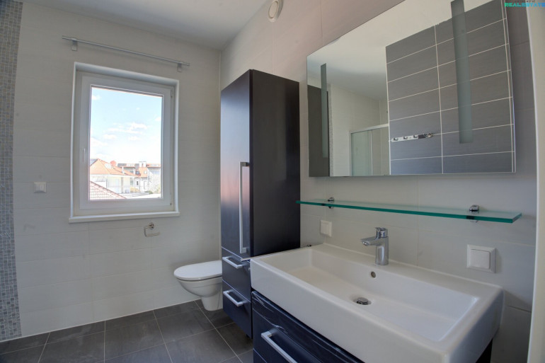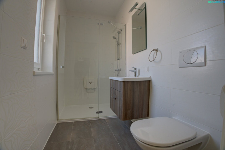- Badezimmer mit WC, Dusche und Fenster