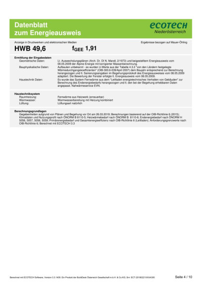 | Heizwärmebedarf: | B 49,60 kWh/m²a |