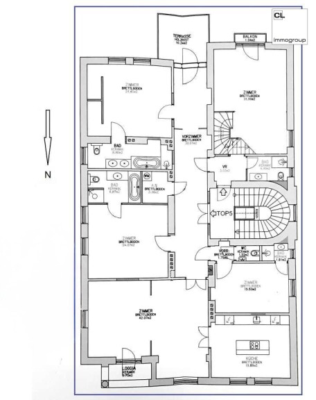 Fliesen, Parkett, Etagenheizung, Personenaufzug, Nordbalkon, Südbalkon, Bad mit Fenster, Badewanne, Dusche